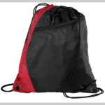 Colorblocking and an asymmetrical zippered front pocket give this cinch pack distinctive character.