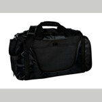 This duffel has it all when it comes to value, style and on-the-go organization. 600 denier polyester with polyester dobby contrast Web handles with padded grip D-shaped zippered opening for easy access Detachable,adjustable shoulder strap Built-in bottom board for shape retention Exterior mesh pocket Front exterior pocket with hook and loop closure Four durable, protective feet Dimensions: 11.75"h x 27"w x 10"d; Approx. 3,173 cubic inches